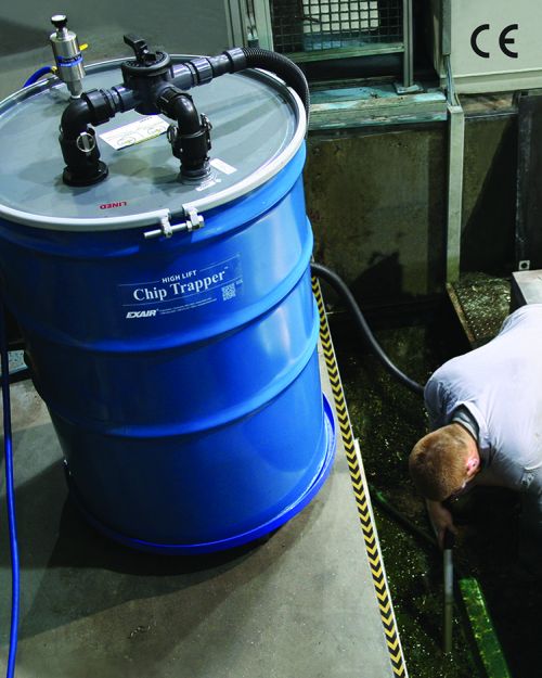 EXAIR 碎片過濾器吸入集塵冷卻液或液體,充滿雜物進入55加侖集塵桶內,過濾所有的固體在可重複使用的過濾袋內。隨著流量閥一轉,乾淨的液體泵唧退了出去。如果經常使用碎片過濾器,可以使昂貴的冷卻液只能持續6週,但現在可以持續半年以上。它非常適合機械中心的污水坑,零件清洗機,桶槽和儲存容器。