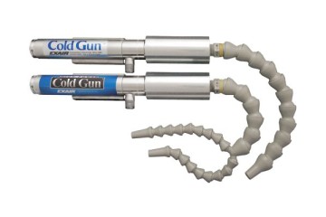 EXAIR 機械加工冷卻槍”空氣冷卻劑”系統包括一個不銹鋼渦流管,使用一般的乾燥壓縮空氣轉換成一端的20°F(-7℃)冷空氣流和另一端則熱空氣流排出。有沒有活動元件磨損。冷卻槍現在擁有的熱空氣排出改進的消音器以降低噪音水平,以一個安靜70分貝排放熱氣流。可撓性球窩軟管能保持其任何位置將冷空氣引導到使用點。磁性底座可輕鬆安裝和便攜性。