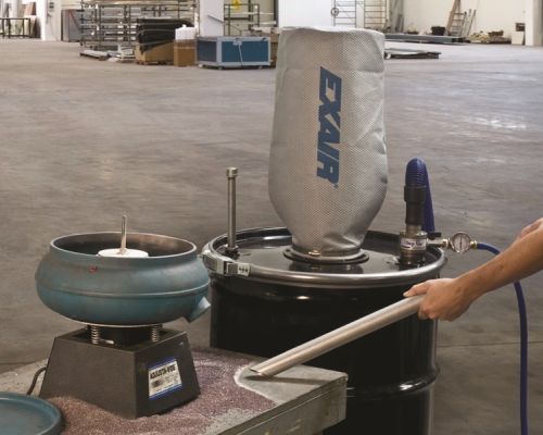 EXAIR 新110加侖的高效能乾式吸塵器系統是一款堅固耐用,工業型真空已經已設計為快速真空大容量乾式材料的吸塵器。更高容量的桶槽意味著更少的桶槽變化將必需清理。因為它是壓縮空氣驅動產生真空,不具有電動馬達或葉輪堵塞或磨損的問題,它是理想的清理磨料材料如鋼粒,石榴石,金屬碎片和沙子,但也可用於一般用途的應用。這是非常安靜82分貝(電動吸塵器的一半噪聲),使其適用於多種環境。吸入真空的塵埃物藉由0.1微米過濾袋過濾產生周圍乾淨的空氣,原廠提供5年品質保固。 110加侖高效能乾式吸塵器系統配有一個10'(3m)防靜電膠管,20'(6m)壓縮空氣軟管,關斷閥,壓力表,耐用鋁工具,刀具架,桶槽滑車和110加侖桶槽。