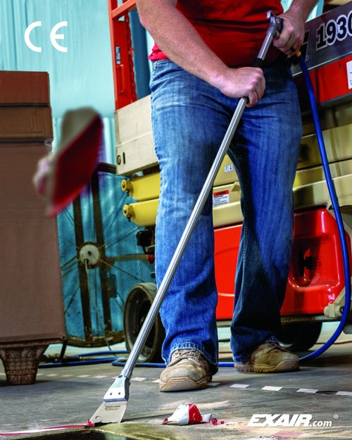 化學鍍鎳彈簧鋼刮刀與EXAIR 2" 扁平超級空氣噴嘴結合使用,安裝在軟握安全氣槍上,提供動力,耐用性,耐腐蝕性和舒適性。符合CE標準的軟握超級空氣刮刀可用於從2英寸到72英寸長的延伸館有助於清潔桌面,機器內部,到達地板或其他遠端表面。EXAIR 空氣噴嘴符合OSHA標準,適用於終端壓力和噪音暴露。還提供碎片防護罩。