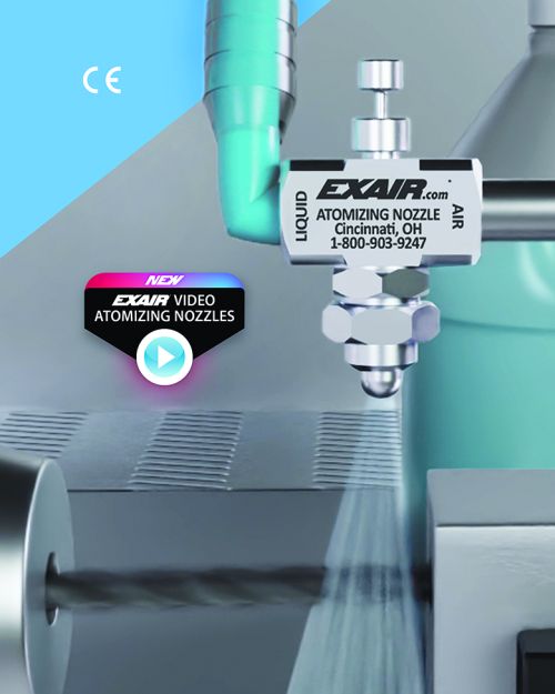 EXAIR 新推出的1/8 “NPT無滴漏外部混合霧化噴嘴混合噴嘴外的液體和空氣,可以獨立調節空氣和液體流量。新的專利無滴漏外部混合霧化噴嘴與我們的標準霧化噴嘴的作動方式相同,但在壓縮空氣關閉時還可以阻止液體流動的額外好處。