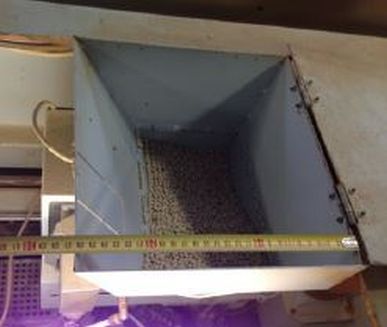 在我們的討論中,他們給了我他們的應用所需的設計規範。膠粒直徑為5.5mm,體積密度為1100Kg / M ^ 3。膠合工作站每個料斗的容量只能使用50公斤/小時。料斗的開口位於加工生產線上方4米處。