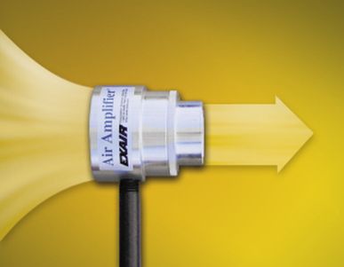 EXAIR 空氣放大器是一種壓縮空氣驅動裝置,意旨在利用少量的壓縮空氣並將它轉化為大體積的氣流。這是透過壓縮空氣通過空氣放大器內的一個小間隙,並允許控制體積排出。這個排出的壓縮空氣流黏附到柯恩達空氣分布輪廓上,而改變其流動方向並誘導夾帶周圍空氣。與入口壓縮空氣流量相比,最終結果是輸出氣流的放大倍數高達25倍。而且,這種已經放大的空氣量繼續從空氣放大器排出空氣,導致進一步放大。